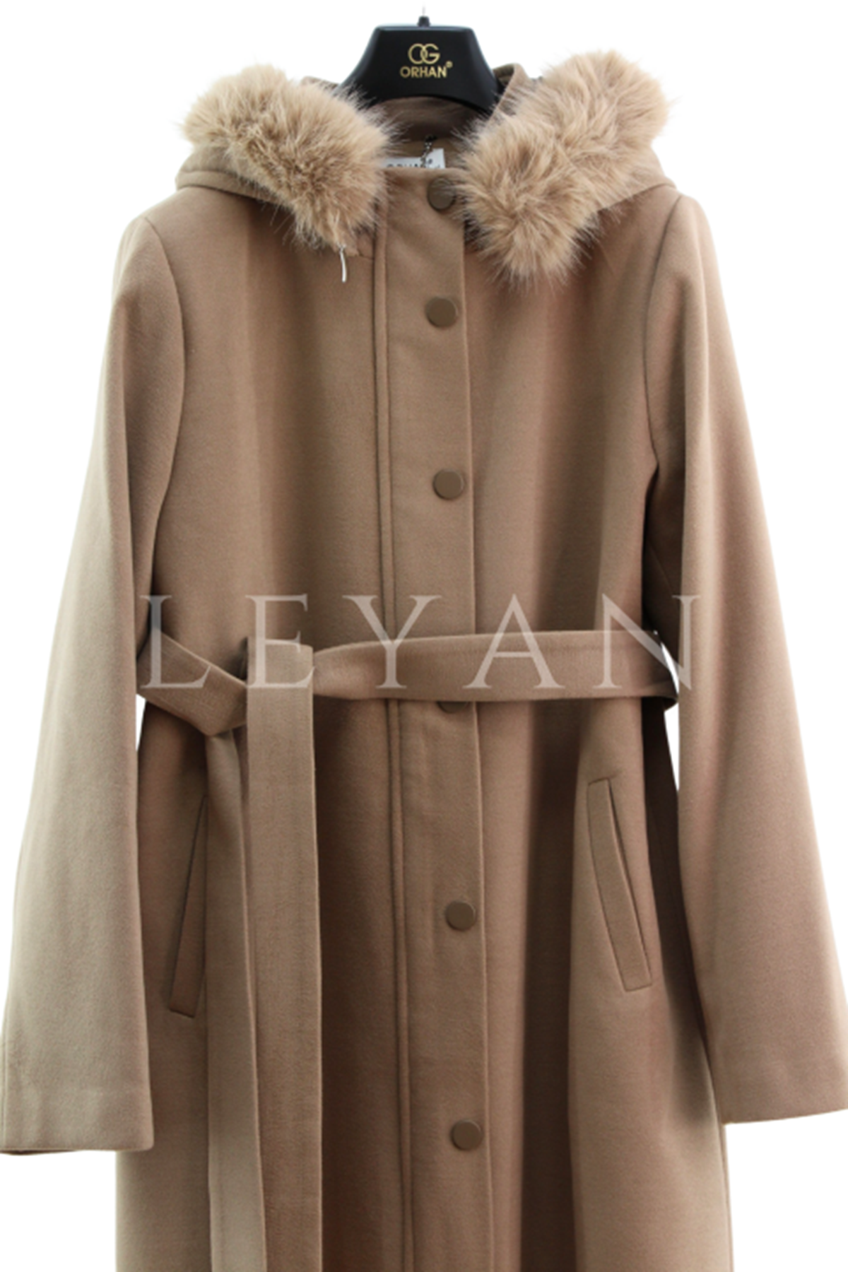Orhan Store Kapşonu Kürklü Kaban- LYN04342 Vizon