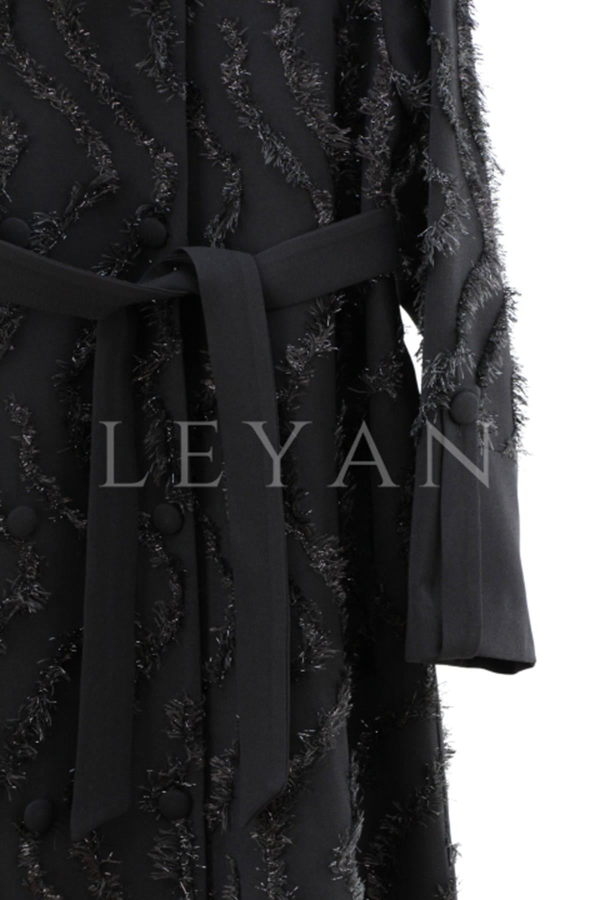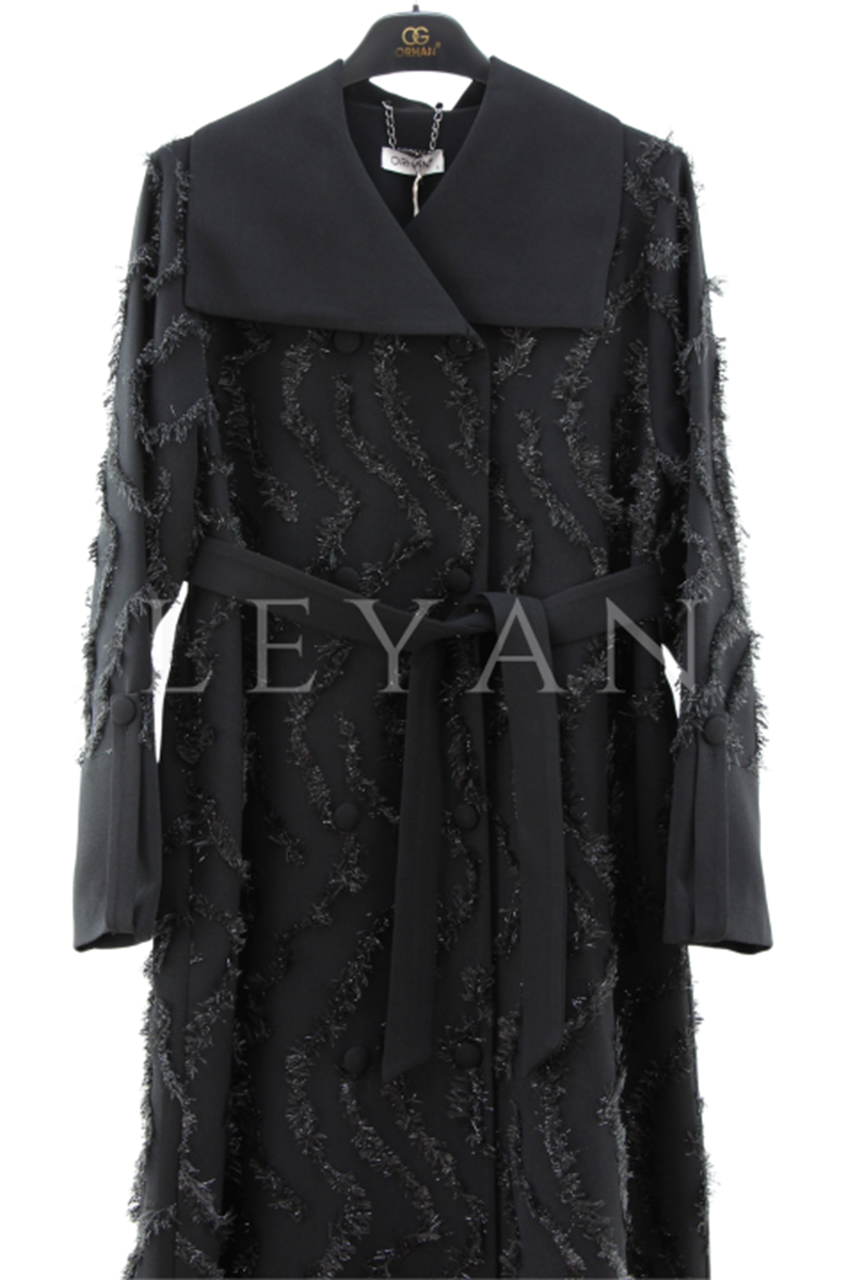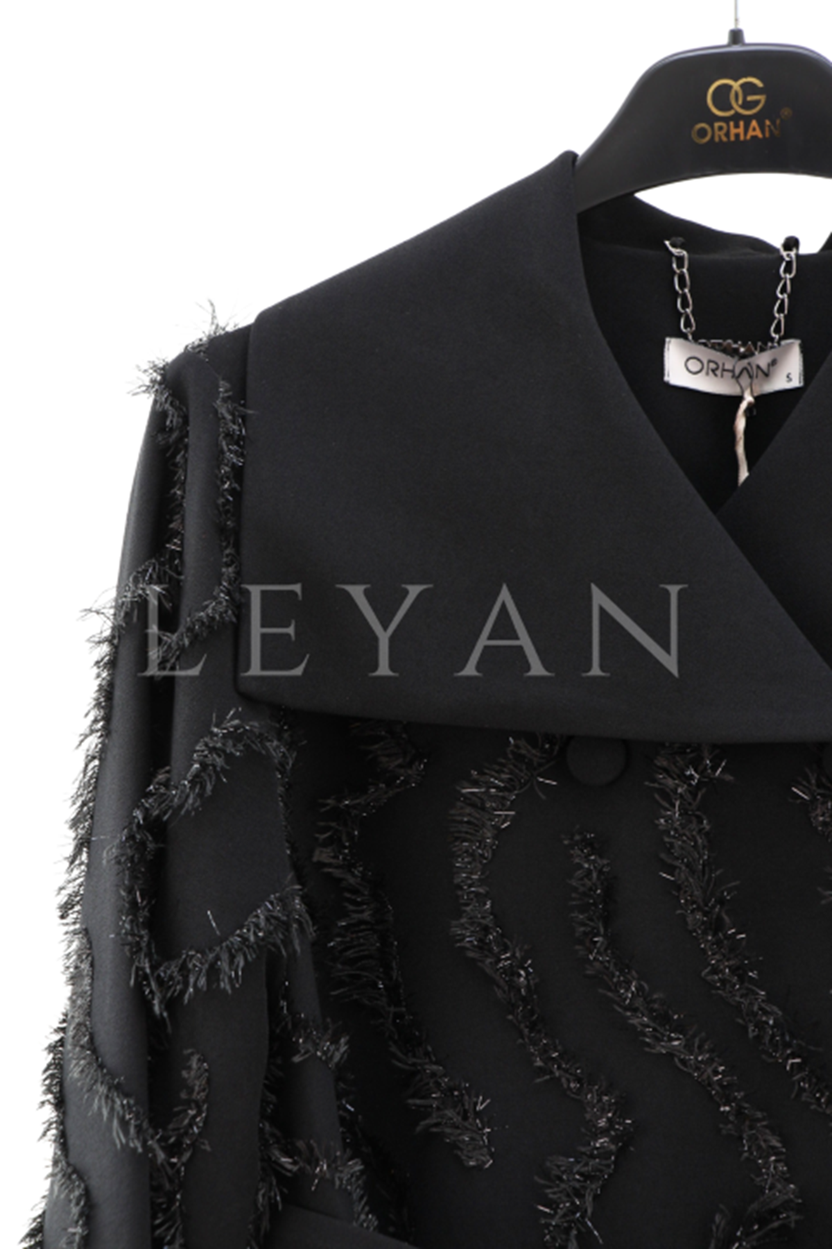 Editör Notu: 42-50 beden aralığında, püskül kumaş detayı ile hareketlendirilmiş, kap modelimiz Leyan’da..