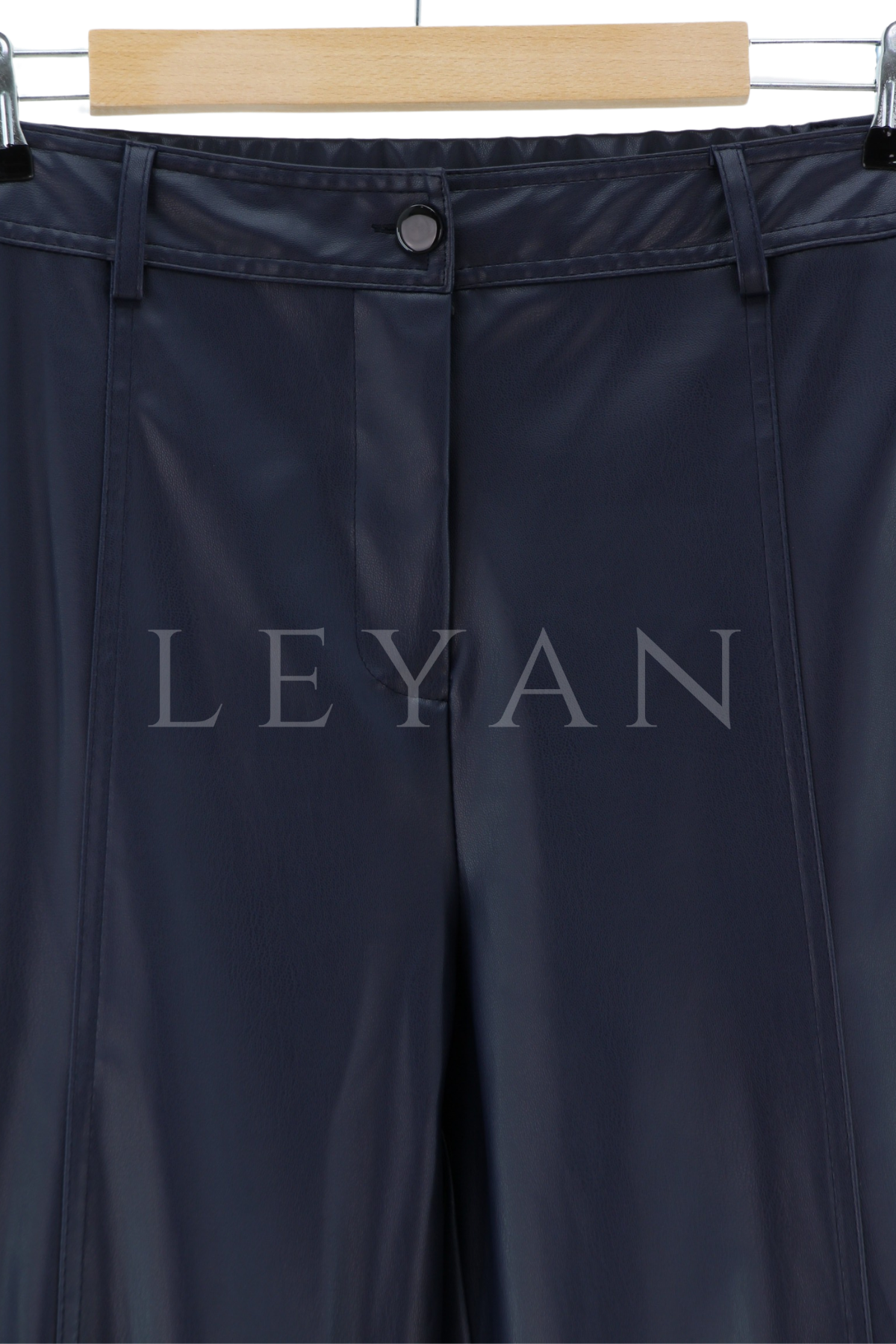Sentez Geniş Paça Deri Pantolon- LYN01738 Lacivert