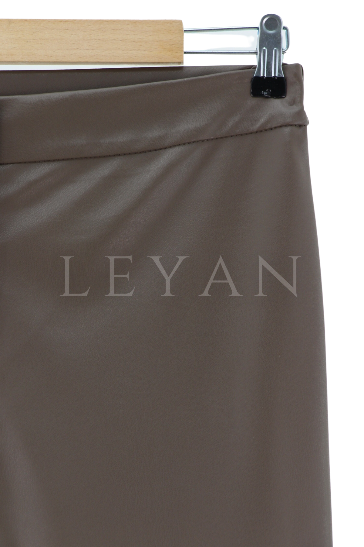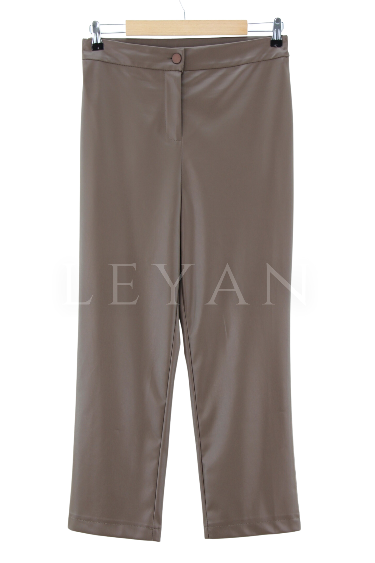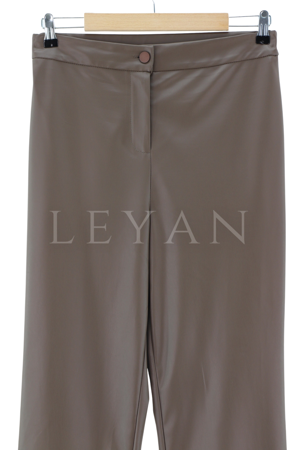 Sentez Geniş Paça Deri Pantolon- LYN01738 Vizon