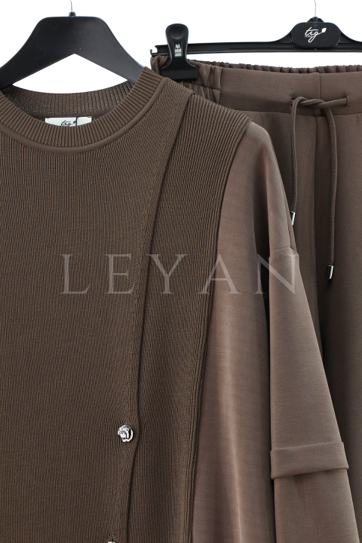 Tığ Triko Triko Kombinli Takım- LYN04256 Kahve