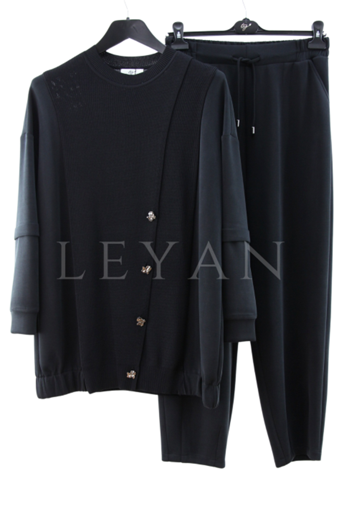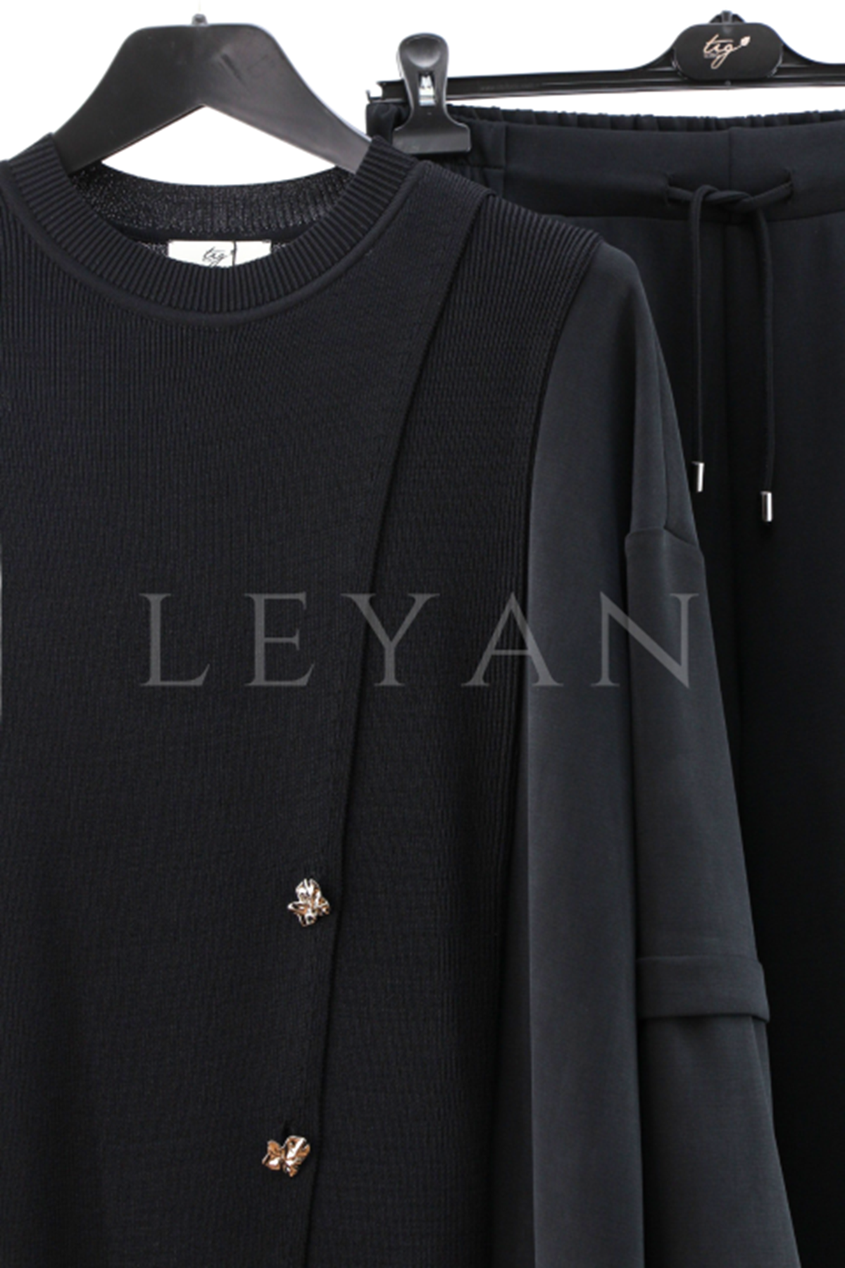 Tığ Triko Triko Kombinli Takım- LYN04256 Siyah