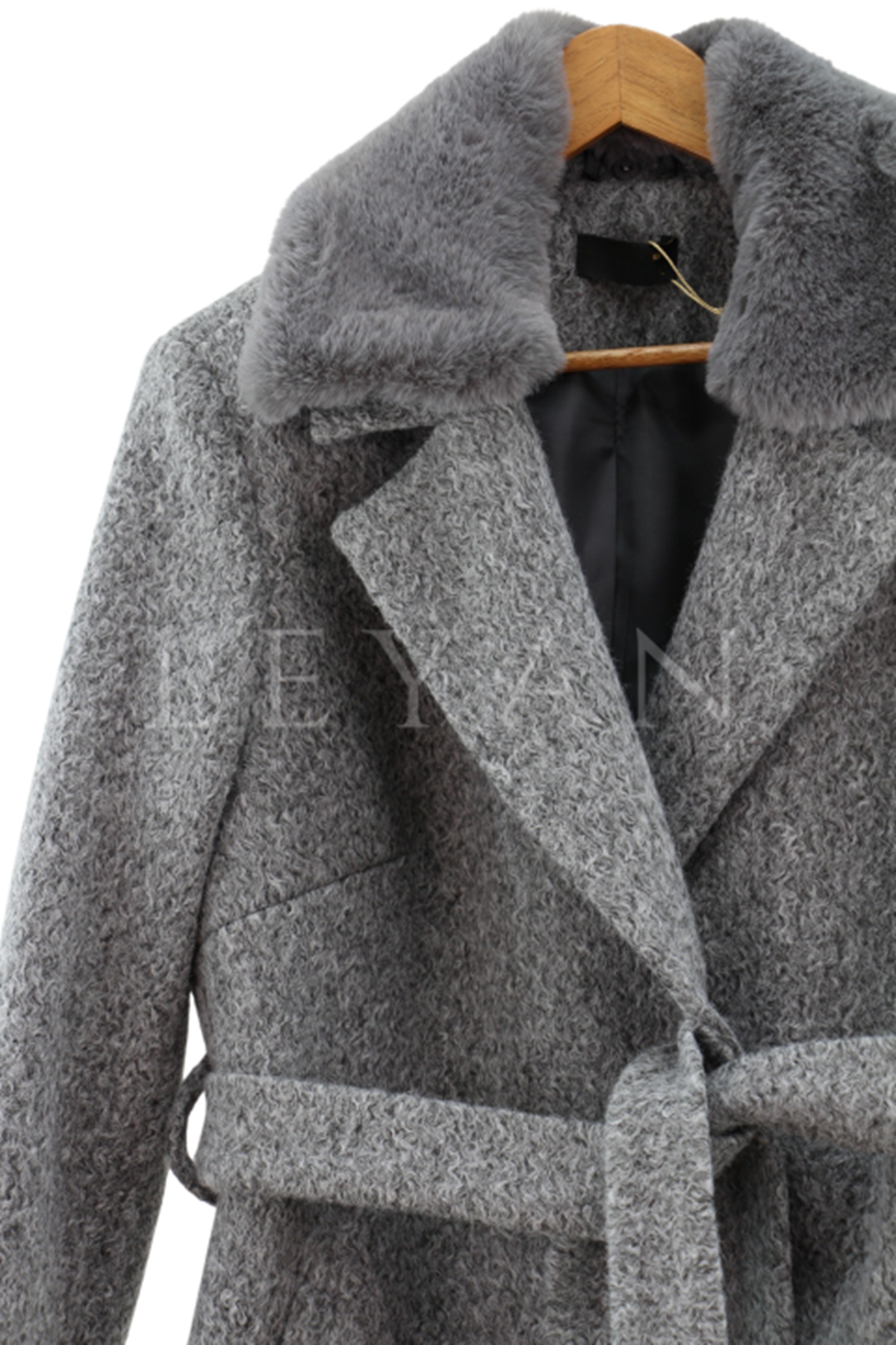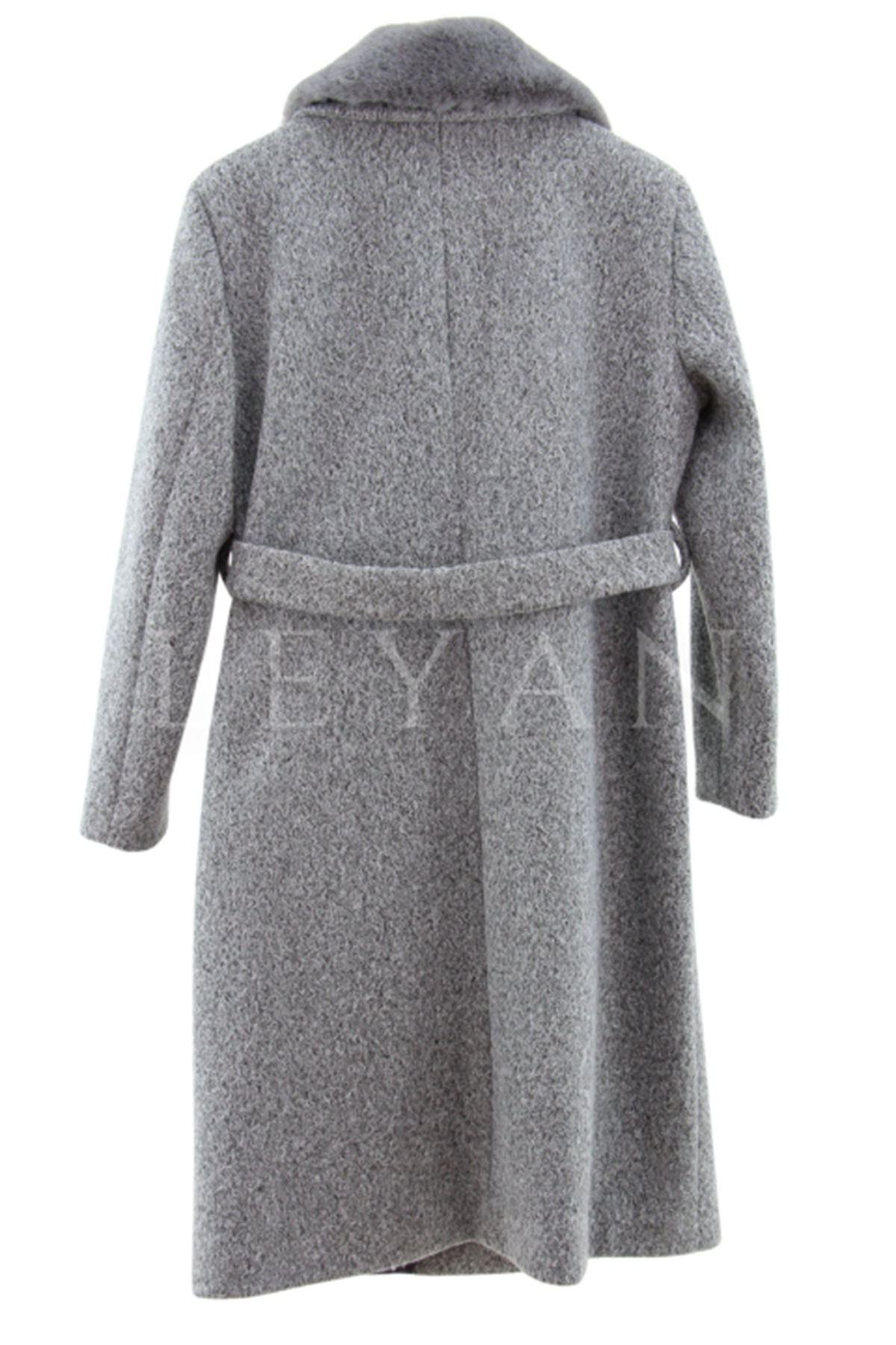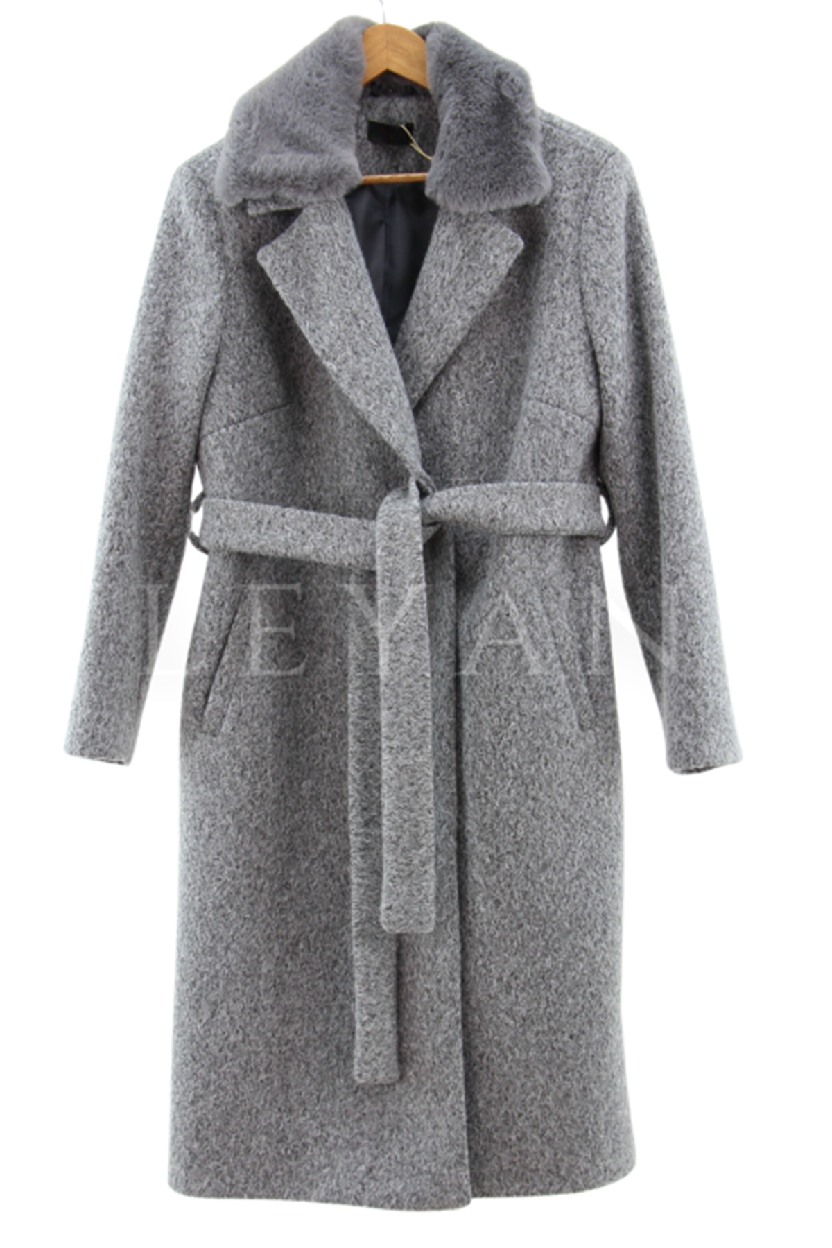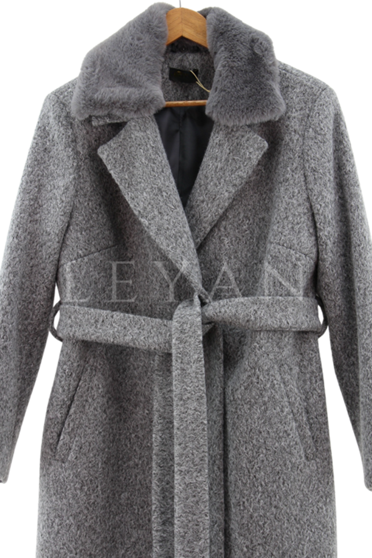 Safir Yakası Kürklü Kaşe Kaban- LYN03236 Gri