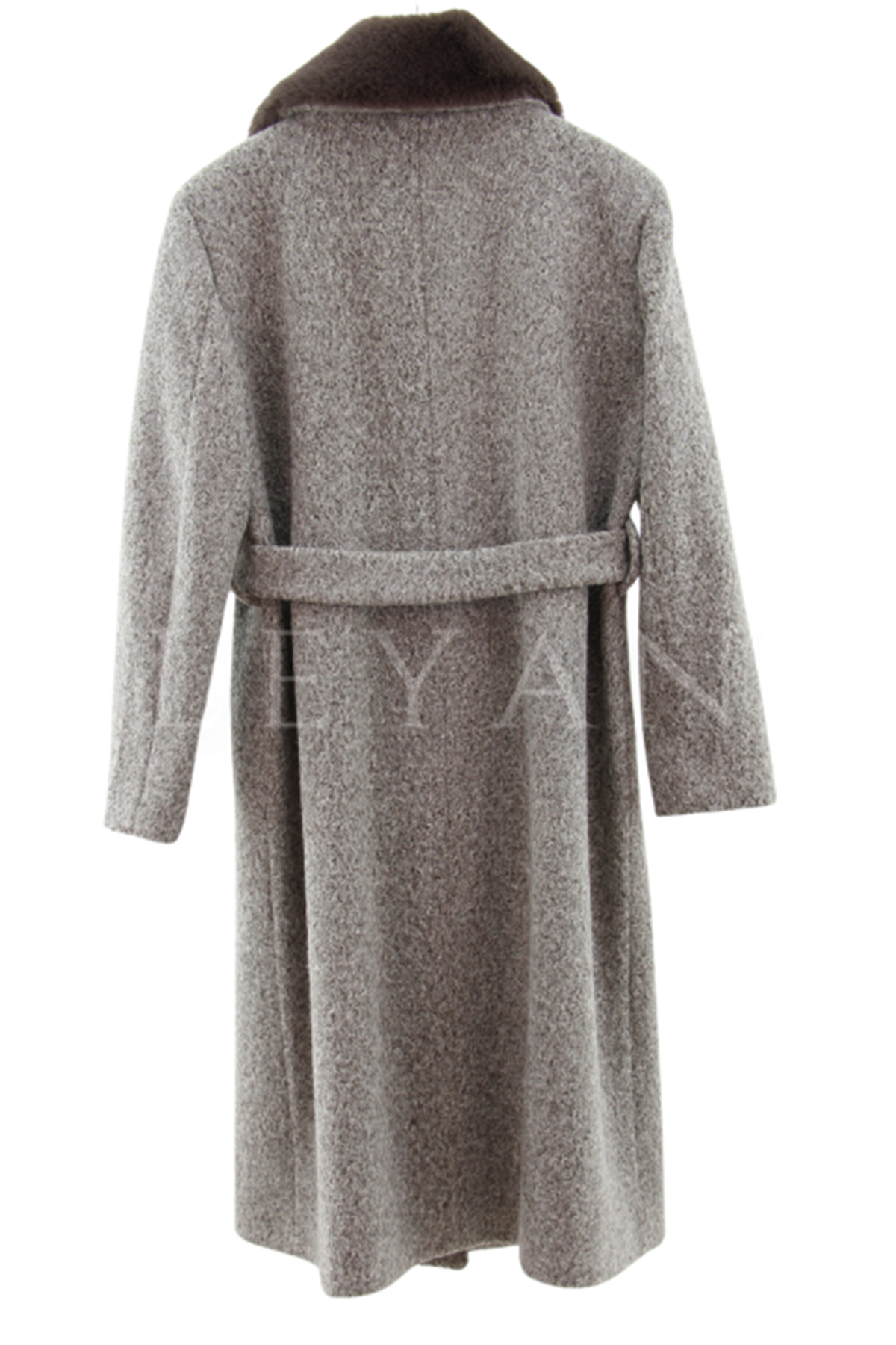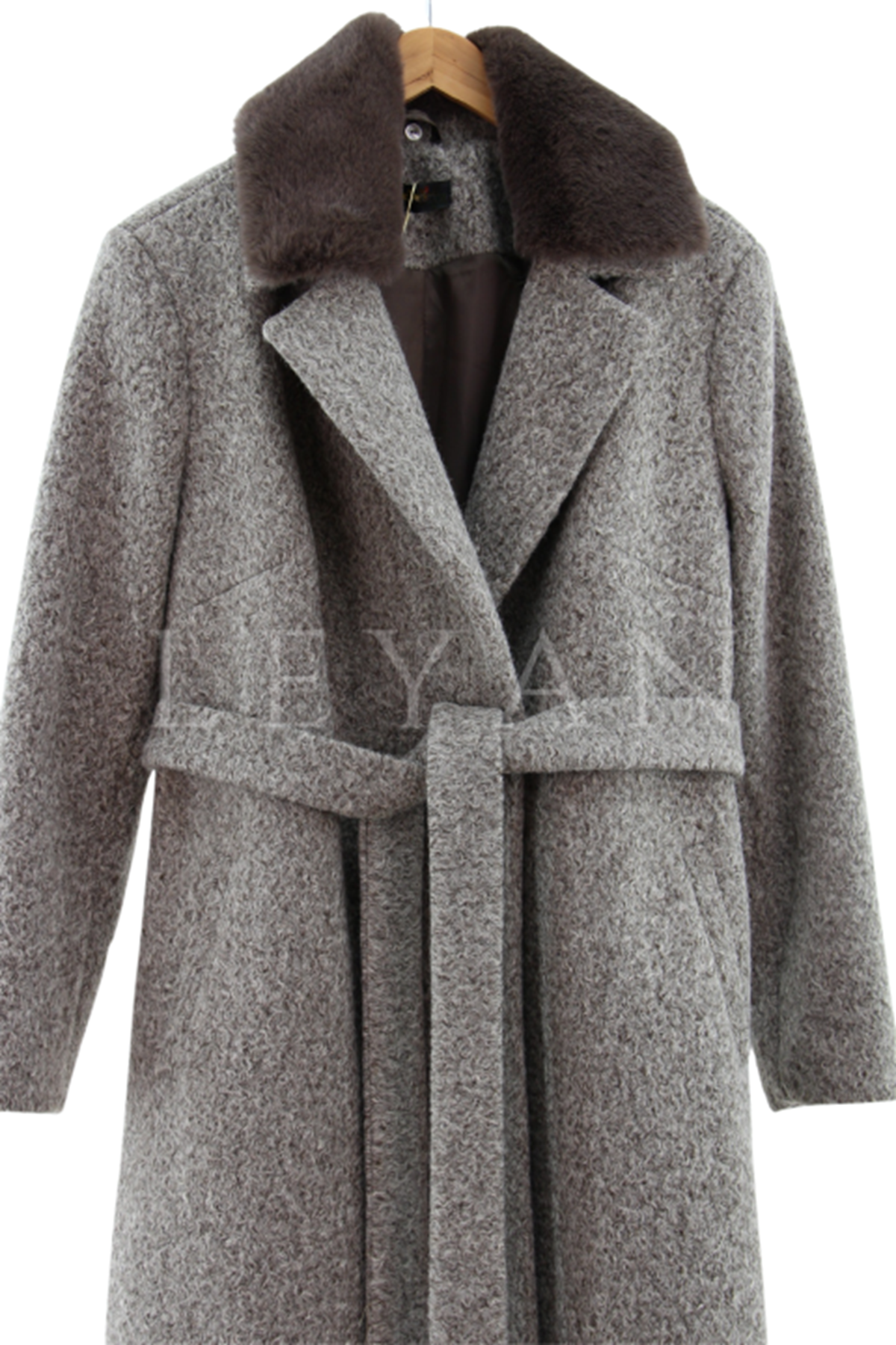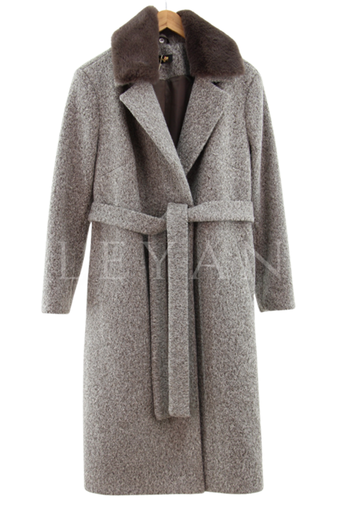 Safir Yakası Kürklü Kaşe Kaban- LYN03236 Kahve